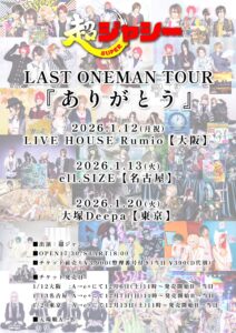 | 2026.1.12[Mon] LIVE HOUSE Rumio【大阪】 超ジャシー LAST ONEMAN TOUR 『ありがとう』